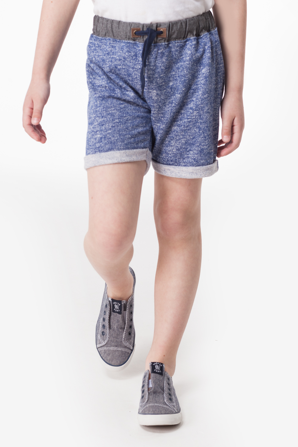 Шорты для мальчика из мягкого футера. Пояс выполнен из отделочной ткани с завязкой на тесемку. Сзади накладные карманы с нашивкой.