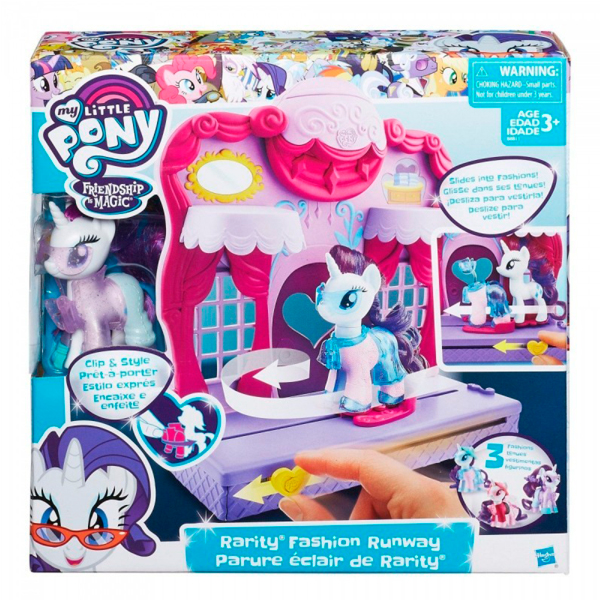 Игровой набор Бутик Рарити в Кантерлоте создан по мотивам мультфильма "Май литл пони". По его сюжету, Рарити - модный модельер, которая обожает шить необычные наряды для жителей Эквестрии. Она открыла собственный бутик, где и представляет свои платья вниманию стильных пони. В магазинчике Рарити можно найти совершенно потрясающие платья и элегантные аксессуары - успей приобрести! В игровой набор My Little Pony входят небольшой домик-магазинчик, фигурка ее владелицы - Рарити, три сменных наряда, а также дополнительные аксессуары для более увлекательной сюжетно-ролевой игры.