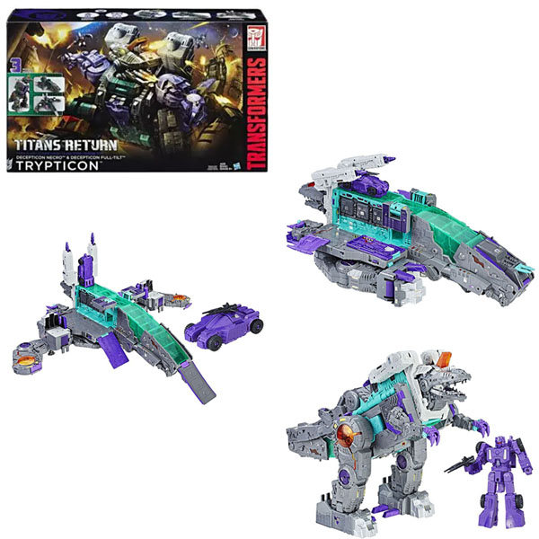 Триптикон - это трансформер ну просто невероятных размеров! Он был создан для того, чтобы десептиконы могли сражаться на Земле с автоботами. Триптикона сделали невероятно мощным и многофункциональным. Он может трансформироваться в 3 варианта: - город (база десептиконов); - подвижная боевая установка с пушками и огнеметом; - динозавр. Трансформация у этой модели действительно сложная, но на помощь придет подробная инструкция с изображением всех этапов. Модель очень качественная и детализированная, выполнена в преимущественно в сером цвете с фиолетовыми, зелеными и оранжевыми элементами. В собранном виде в режиме динозавра модель Триптикона будет достигать в высоту около полуметра!