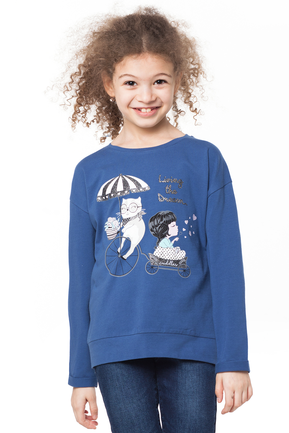 Джемпер выполнен из эластичного хлопкового полотна. Спереди печатный принт с глиттером.