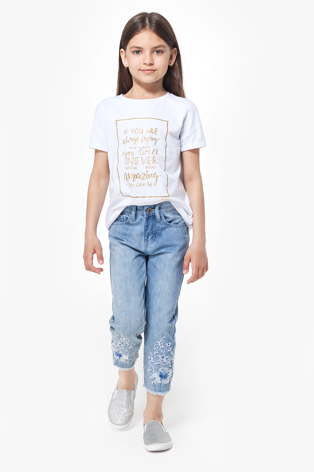 Модель выполнена в стиле family-look с джинсами для девочки арт. D54.138