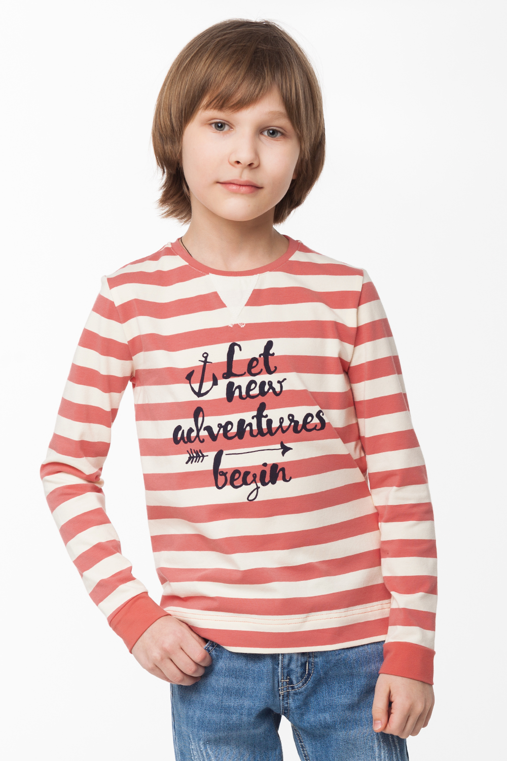 Лонгслив выполнен из мягкого эластичного хлопкового полотна. Модель с декоративной ставкой под горловиной и печатным принтом.