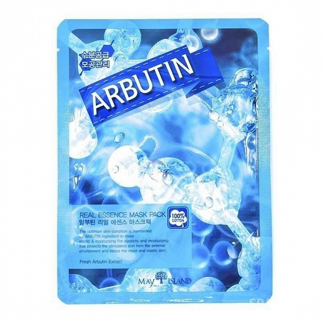 Тканевая маска для лица с экстрактом арбутина обладает осветляющим и отбеливающим эффектом. Арбутин блокирует в коже синтез пигмента меланина, осветляет пигментные пятна, борется с нежелательной пигментацией и смягчает кожу. Маска с арбутином увлажняет, восстанавливает и придает коже ровный сияющий тон. Успокаивает, повышает регенеративную способность клеток, придает коже упругость, оказывает увлажняющее действие на сухую и шелушащуюся кожу. Регулярное использование маски делает кожу более гладкой и сияющей.