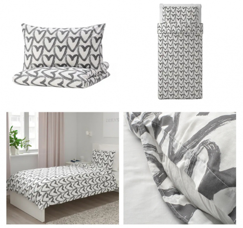 Пододеяльник и наволочка, белый/серый, 150x200/50x70 см