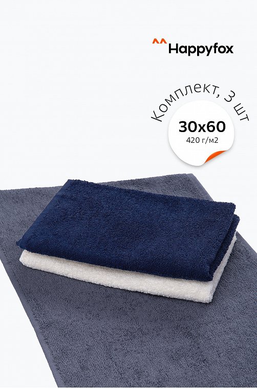 В комплект входят три однотонных махровых полотенца средней плотности (420 г/м2). Полотенца выполнены в разных цветах, в размере 30X60 см. Классический дизайн, аккуратные и прочные швы.