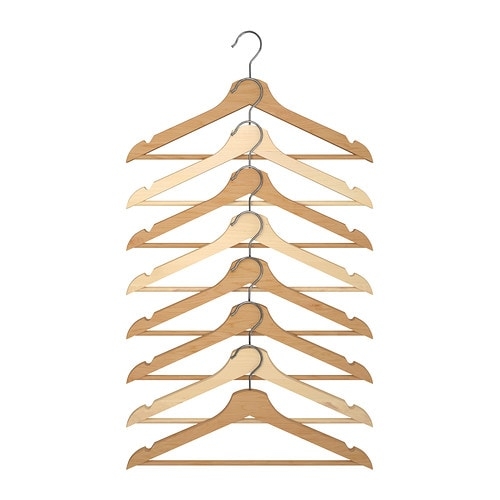 Прочные плечики из массива дерева выдержат даже тяжелые пальто.