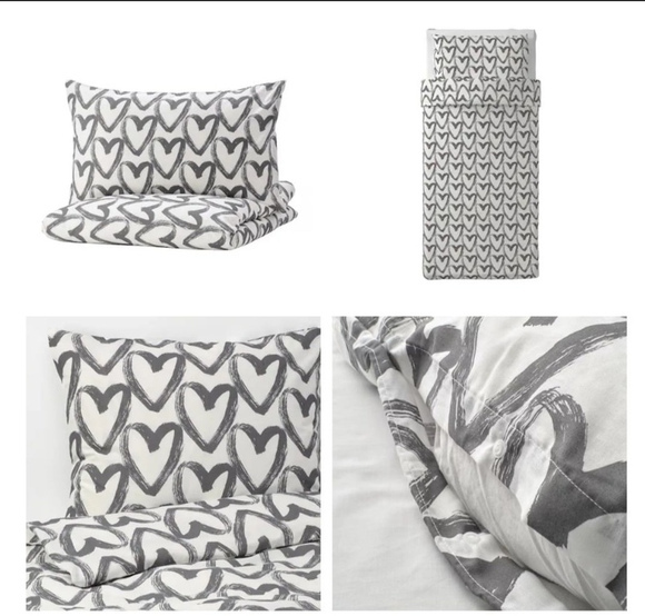 Пододеяльник и наволочка, белый/серый, 150x200/50x70 см Материал 65% хлопок, 35% полиэстер