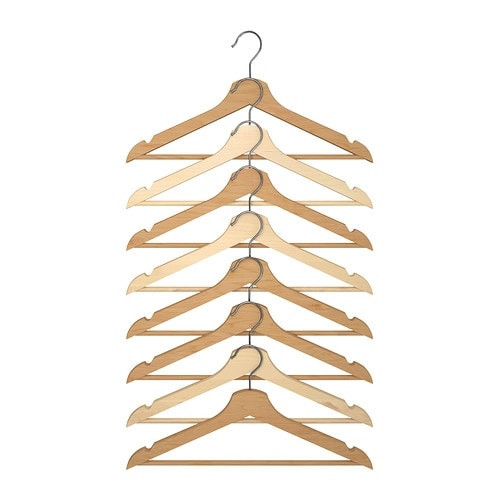 Прочные плечики из массива дерева выдержат даже тяжелые пальто.