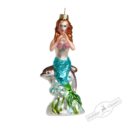 Русалка с дельфином (стекло) 5,5х3,5х15,5 см